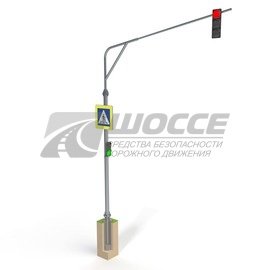 Конструкция опоры ОМГФ-СВ-6,0-4,5 позволяет устанавливать светофоры, дублирующие дорожные знаки 5.19.1 и 5.19.2 "Пешеходный переход" над проезжей частью на уровне 6 метров от проезжей частью.